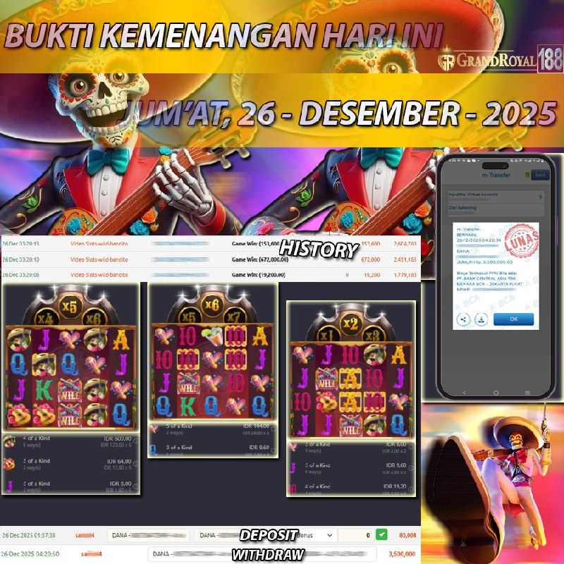 Semua Kemenangan Member Yang Mendapatkan Jackpot Besar Akan Kami Posting Agar Semua Para Pemain Judi Online Dapat Melihat Situs Slot Online GRANDROYAL188 Ini. Membayar Semua Kemenangan Member Hingga Lunas Tanpa Ada Kendala.