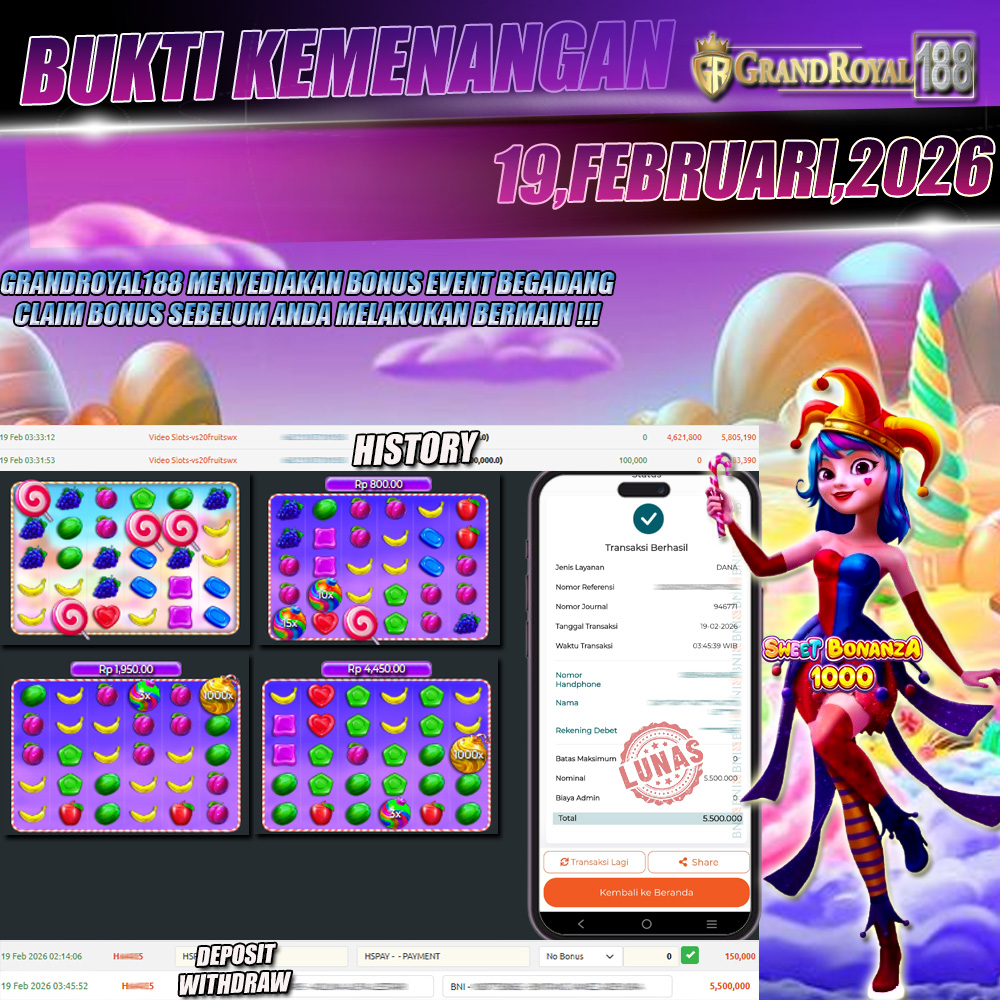 SITUS RESMI & DAN TERPERCAYA BURUAN DICOBAIN BERGABUNG DI WEBSITE GRANDROYAL188 KEMENANGAN MENYALA BOSKU PERIODE 19 FEBRUARI 2026 SPESIAL AWAL BULAN
